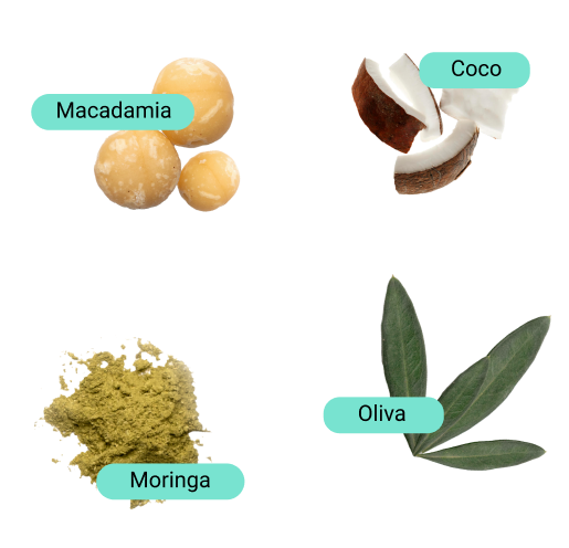 Coco, macadamia, oliva y moringa se combinan en un mix perfecto para nutrir, reparar y darle brillo a tu pelo.